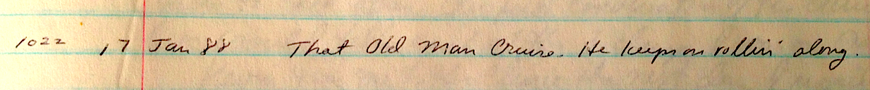 January 17 (1022) That Old Man Cruise. He keeps on rollin’ along.